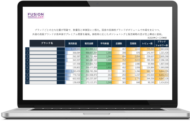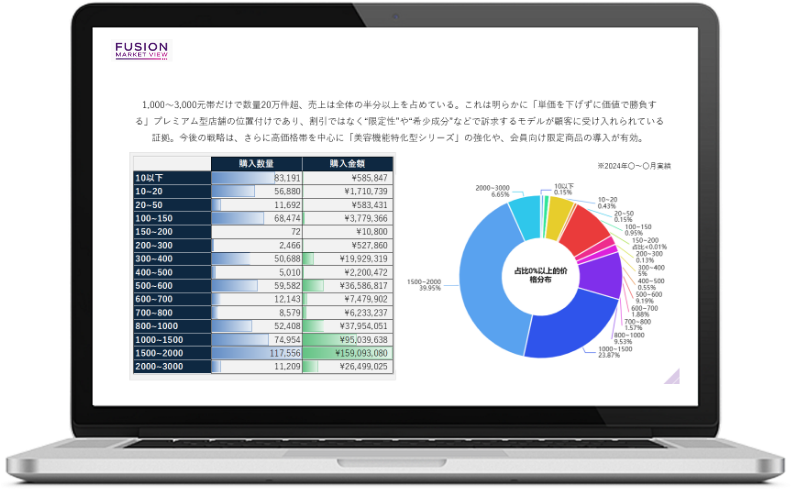 販売・トレンドを分析し現地市場の正確な把握と次の一手のための戦略的根拠を提供します。
