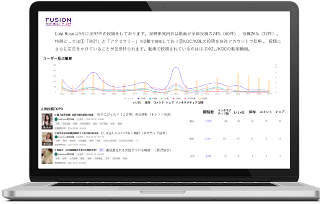 小紅書(RED)や抖音(Douyin)といった主要SNSにおける特定カテゴリのトレンドワード、人気の投稿内容、KOL/KOCのエンゲージメント率などを分析し訴求戦略に活かします。